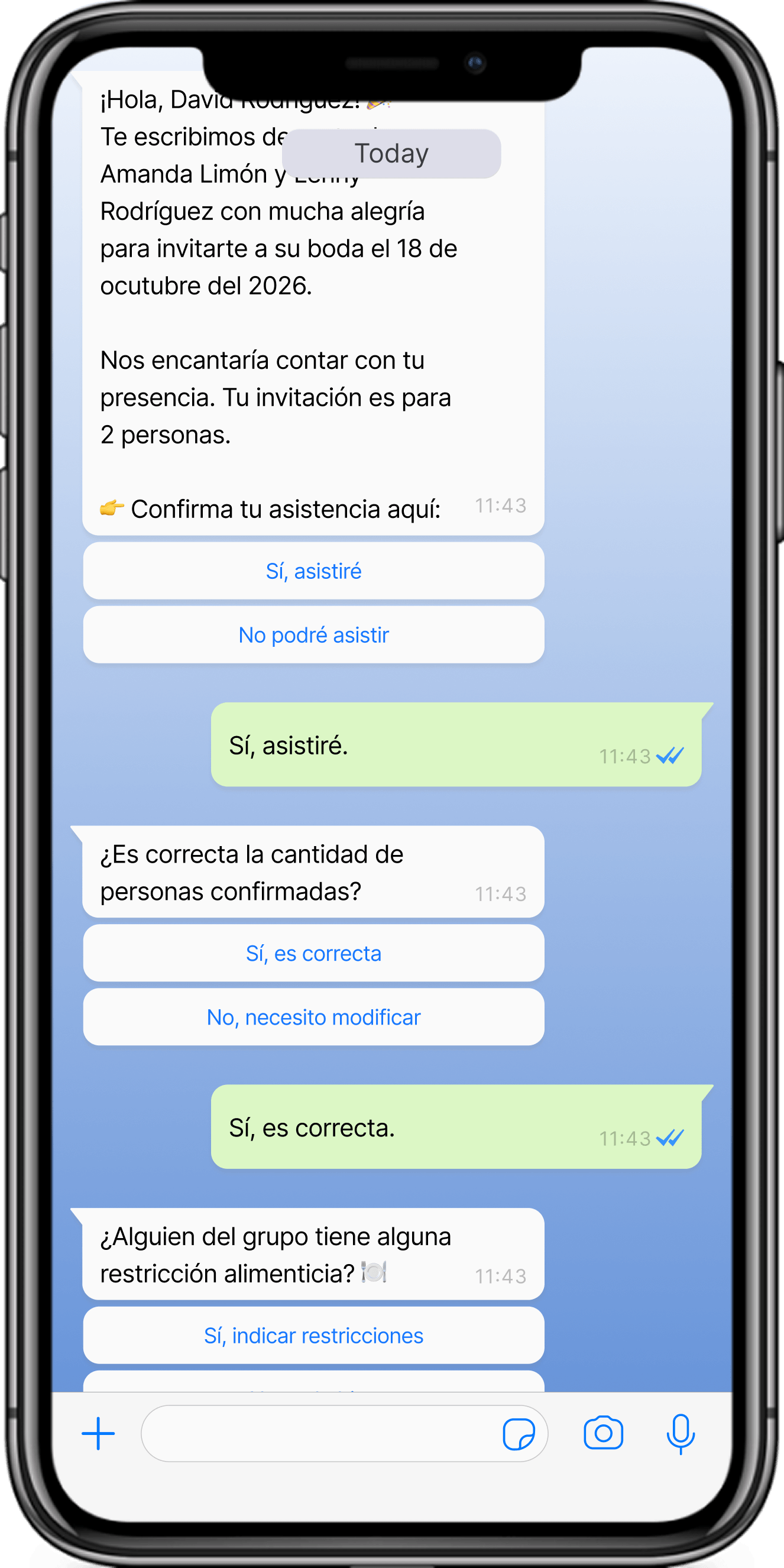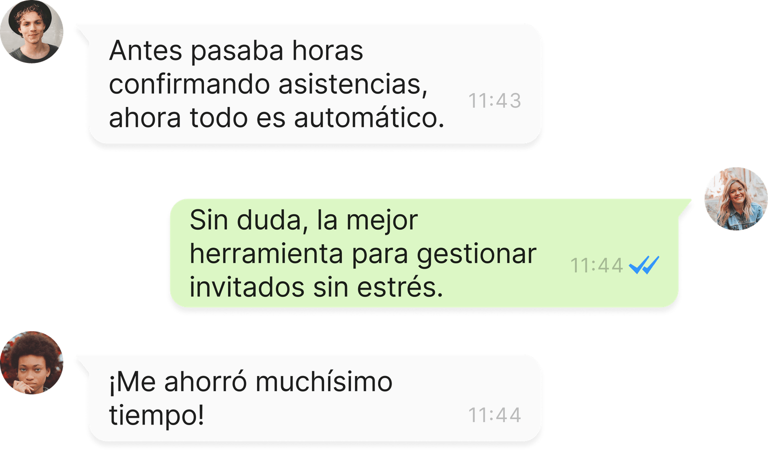 Gestiona invitaciones, confirma asistentes y realiza check-ins a través de WhatsApp, todo desde una sola plataforma.